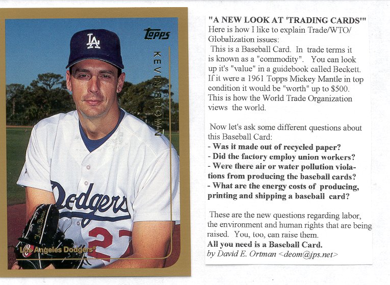 Third "Still Don't Get It Award" goes to the Seattle Post-Intellegencer. On 2 December, the P-I editorialized that "Alluding to what he called the 'rather interesting hoopla' in the streets of Seattle, Clinton posed what he correctly called the 'core' question free trade critics must answer. 'Do you believe that, on balance, over the last 50 years, the U.S. has benefited from world trade? I do,' the president said. So do we."